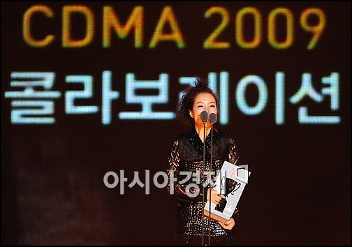[아시아경제 박성기 기자]가수 정인이 1일 오후 5시 서울 방이동 올림픽공원에서 진행된 '싸이월드 디지털뮤직어워드 2009(CDMA 2009)'에서 '2009 콜라보레이션'을 수상했다.