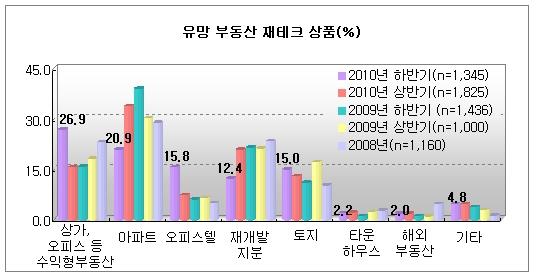 29일 부동산 정보업체 스피드뱅크에 따르면 올 하반기 유망 상품으로 상가, 오피스 등 수익형 부동산이 올 상반기까지 인기를 끌었던 아파트를 제치고 1위를 차지했다.