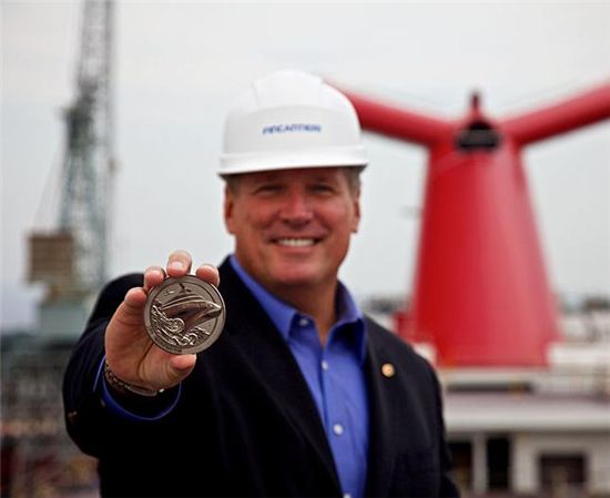 이날 행사에서는 모팔코네 조선소에서 35년간 근무한 베테랑 여 직원인 로라 부티논씨가 대모로 선정돼 카니발 매직이 그려진 은화 코인을 부착했다.