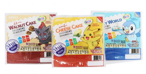 시금치분말이 첨가된 ‘피카츄의 요미요미 치즈케익’, 유산균이 첨가된 쫄깃한 우유 찜케익 ‘팽도리의 샤르르 밀키월드’, 두뇌회전에 좋은 호두가 들어있는 ‘조로아의 보들보들 호두케익’ 등 총 3종이다.