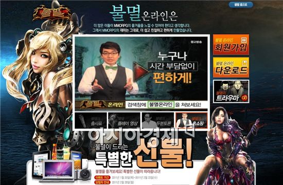 또한 회원들에 대한 감사와 신규서버 오픈을 기념해 오는 23일까지는 ‘불멸이 드리는 특별한 선물’이벤트를 실시할 예정이다. 이 기간 동안 신규 가입한 회원들 중 추첨을 통해 ‘아이패드’, ‘문화상품권’ 등을 비롯해 다양한 음료 교환권 등을 지급하며,특정레벨(20, 30, 40레벨)달성 시엔 각 레벨에 따른경품(‘소니 디지털 카메라’,‘갤럭시 탭’, ‘맥북에어’)을 추첨을 통해 제공할 예정이다.