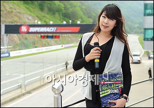 [태백(강원) = 아시아경제 박성기 기자] 레이싱모델 서승현이 강원도 태백시 레이싱파크에서 진행된 '2011 티빙 슈퍼레이스 챔피언십' 2전에서 MC로 변신, 사회를 보고 있다.