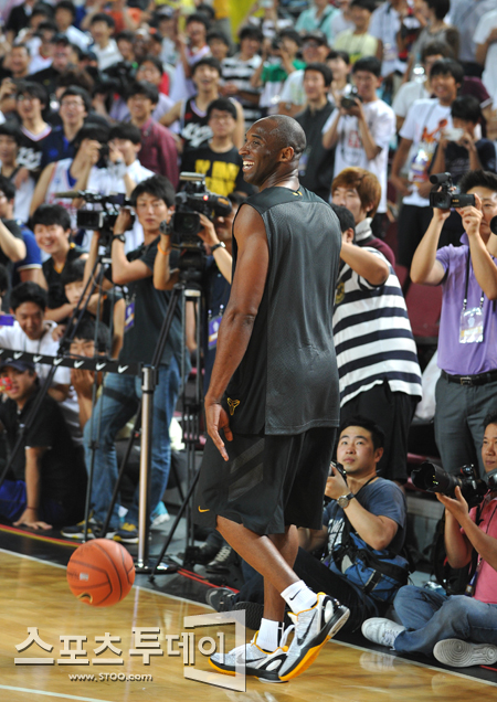 [스포츠투데이 정재훈 기자] 'NBA 슈퍼스타' 코비 브라이언트(33,LA 레이커스)가 14일 오후 고려대 화정체육관에서 열린 '코비 브라이언트 코리아 투어 2011(Kobe Bryant Korea Tour 2011)'에서 농구 클리닉을 진행하고 있다.