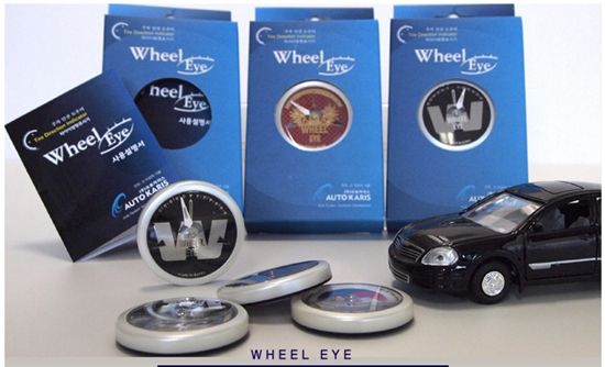 오토카리스(대표 이재옥)에서 개발한 타이어 방향표시기 '휠아이'는 초보운전자들도 쉽고 편리하게 주차를 할 수 있게 도와주는 제품이다. 언뜻 보기에는 장난감 나침반 같지만 과학적인 원리로 만든 신기술이 집약돼 있다. 핸들이 좌우로 회전할 때 타이어는 일정 비율 각도로 움직인다. 이 비율에 맞게 특수 설계된 톱니바퀴를 제품 내부에 넣고 바늘 각도의 표시로 타이어의 움직임을 알 수 있게 한 원리다.