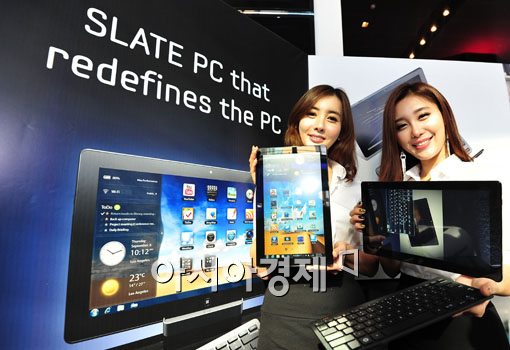 [아시아경제 윤동주 기자] 삼성전자는 9일 서울 서초구 삼성전자 딜라이트 홍보관에서 '슬레이트 PC'를 선보이고 있다. 슬레이트PC는 지난 9월 IFA2011에서 소개된 제품으로 노트북과 태블릿의 역활을 모두 수행할 수 있는 제품이다.