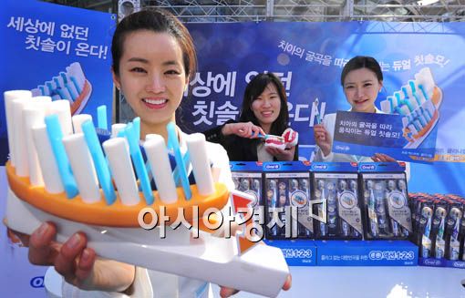 [아시아경제 양지웅 기자] 구강관리 전문브랜드 오랄비가 20일 서울 청계광장에서 신제품 움직이는 듀얼 칫솔모 ‘클리니컬 프로플렉스’를 선보이고 있다.