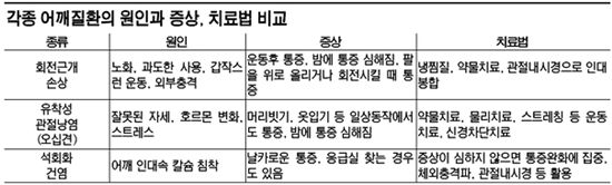 원인과 치료법은 다르지만 어깨질환의 예방법은 비슷하다. 근육과 힘줄을 튼튼하고 유연하게 유지할 수 있게 평소 꾸준한 운동이 필요하다는 점이다.