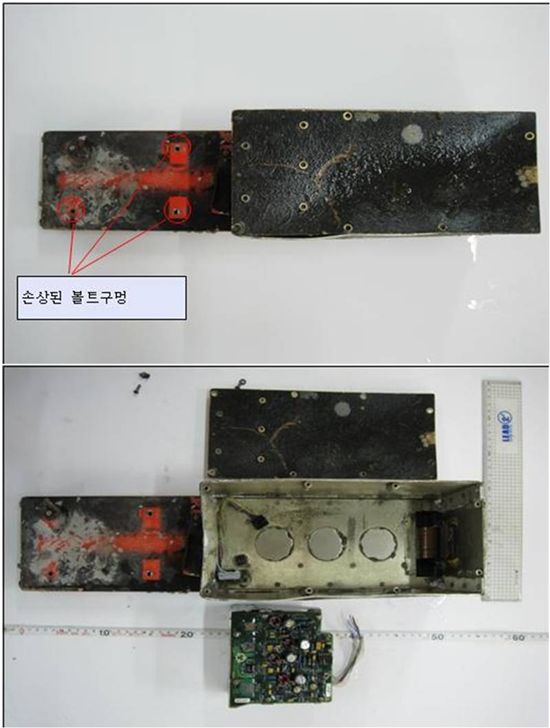 그 결과 비행자료기록장치(FDR)의 자료변환부와 항공기 잔해 등 870점을 추가로 인양했지만 비행 자료가 저장되는 자료저장부는 끝내 수거하지 못했다. 인양된 자료변환부는 검게 타버린 상태였다. 자료저장부가 부착돼 있던 접촉부분은 원래의 주황색으로 남아 있어 해상 충돌 시 분리된 것으로 보인다.