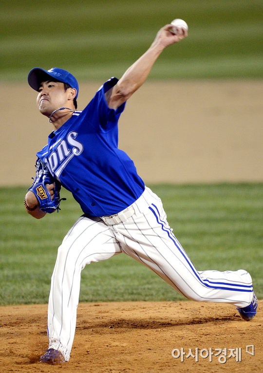 [아시아경제 정재훈 기자] 1일 오후 잠실야구장에서 열린 '2012 팔도 프로야구 한국시리즈' SK 와이번스와 삼성 라이온즈의 6차전 경기에서 삼성 선발투수 장원삼이 역투하고 있다.