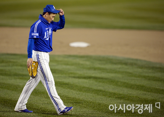 [아시아경제 정재훈 기자] 삼성 이승엽이 1일 오후 잠실야구장에서 열린 '2012 팔도 프로야구 한국시리즈' SK 와이번스와 삼성 라이온즈의 6차전 경기에서 수비를 위해 1루로 이동하고 있다.