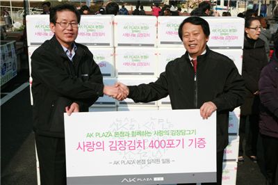 이 밖에 AK플라자 분당점과 평택점도 '함께 나누어요' 캠페인의 일환으로 11월 말까지 해당 지역 독거노인과 소년소녀 가장들에게 김장김치 1000포기와 쌀, 휴지 등 생필품을 전달하고 환경 개선 작업을 펼치는 등 다양한 활동을 전개할 예정이다.