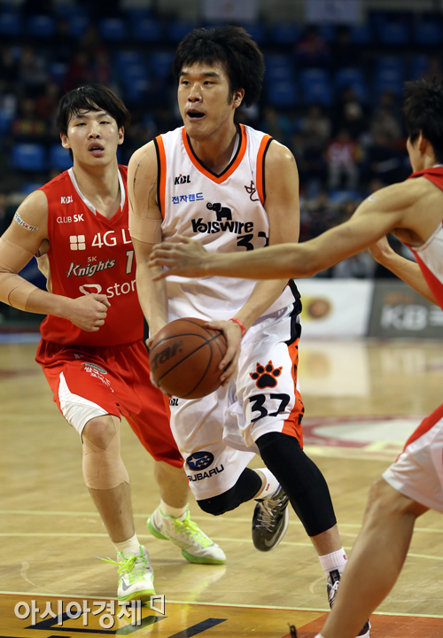 [아시아경제 정재훈 기자] 15일 오후 잠실학생체육관에서 열린 'KB국민카드 2012~2013 프로농구' 서울 SK 나이츠와 인천 전자랜드 엘리펀츠의 경기에서 전자랜드 주태수가 돌파를 시도하고 있다.