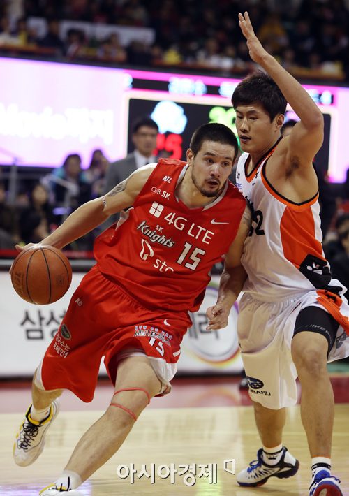 [아시아경제 정재훈 기자] 15일 오후 잠실학생체육관에서 열린 'KB국민카드 2012~2013 프로농구' 서울 SK 나이츠와 인천 전자랜드 엘리펀츠의 경기에서 전자랜드 김민수가 돌파를 시도하고 있다.