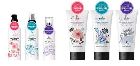 케라시스 러블리&로맨틱 퍼퓸 트리트먼트는 바질의 풍부한 비타민과 데이지 꽃의 향을 담아 힘없이 처지는 모발을 탄력 있게 감싸준다. 케라시스 엘레강스&센슈얼 퍼퓸 트리트먼트는 올리브와 쉐어버터의 영양을 담았다. 케라시스 퓨어&차밍 퍼퓸 트리트먼트는 백합과 띠아레 꽃의 성분을 담아 모발을 촉촉하게 해준다. 가격은 각각 8500원이다.