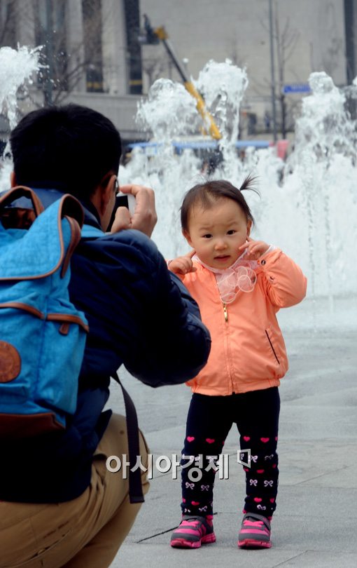[아시아경제 백소아 기자] 봄과 함께 광화문 광장 분수가 돌아왔다. 1일 서울 세종로 광화문광장에서 정상가동을 시작한 분수 옆에서 한 아이가 사진을 찍고 있다. 광화문 광장 분수는 오전 10시부터 오후 7시 50분까지 가동되며 10월 31일까지 운영될 계획이다.