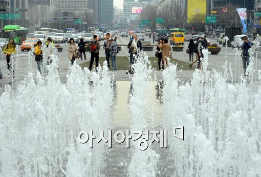 [아시아경제 백소아 기자] 봄과 함께 광화문 광장 분수가 돌아왔다. 1일 서울 세종로 광화문광장에서 정상가동을 시작한 분수 사이로 시민들이 걸어가고 있다. 광화문 광장 분수는 오전 10시부터 오후 7시 50분까지 가동되며 10월 31일까지 운영될 계획이다.