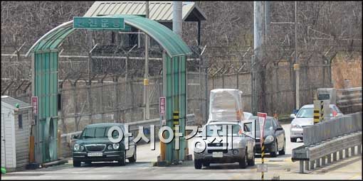 [파주=아시아경제 최우창 기자]북한이 개성공단 잠정중단을 발표한 가운데 9일 경기 파주시 도라산 남북출입국사무소(CIQ)에서 짐을 가득 실려 있는 차량들이 입경하고 있다.