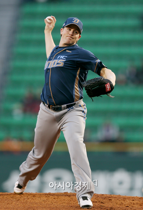 [아시아경제 정재훈 기자] 10일 오후 서울 잠실야구장에서 열린 '2013 한국야쿠르트 세븐프로야구' LG 트윈스와 NC 다이노스의 경기. NC 선발투수 에릭이 역투하고 있다.