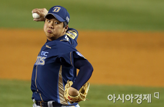[아시아경제 정재훈 기자] 10일 오후 서울 잠실야구장에서 열린 '2013 한국야쿠르트 세븐프로야구' LG 트윈스와 NC 다이노스의 경기. NC 이민호가 역투하고 있다.