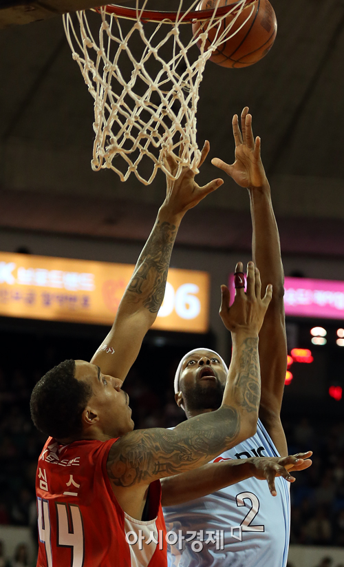 [아시아경제 정재훈 기자] 13일 오후 서울 잠실학생체육관에서 열린 'KB국민카드 2012~2013 프로농구' 서울 SK 나이츠와 울산 모비스 피버스의 챔피언결정전 1차전. 모비스 로드 벤슨이 슛을 시도하고 있다.