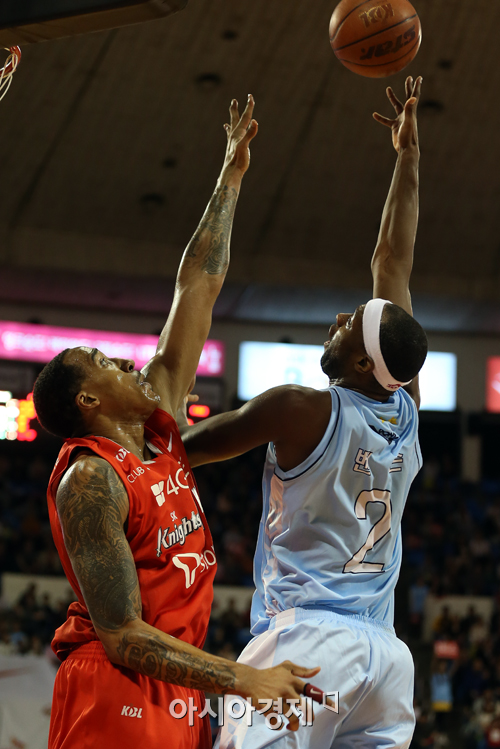 [아시아경제 정재훈 기자] 13일 오후 서울 잠실학생체육관에서 열린 'KB국민카드 2012~2013 프로농구' 서울 SK 나이츠와 울산 모비스 피버스의 챔피언결정전 1차전. 모비스 로드 벤슨이 슛을 시도하고 있다.