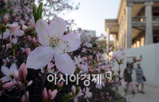 [아시아경제 백소아 기자] 서울 낮 기온이 19도를 기록한 24일 서울 중구 덕수궁에 흰철쭉이 완연한 봄을 전하고 있다.