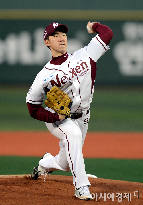[아시아경제 정재훈 기자] 25일 오후 서울 목동야구장에서 열린 '2013 한국야쿠르트 세븐프로야구' 넥센 히어로즈와 두산 베어스의 경기. 넥센 선발투수 강윤구가 역투하고 있다.