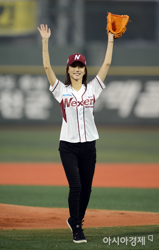 [아시아경제 정재훈 기자] 25일 오후 서울 목동야구장에서 열린 '2013 한국야쿠르트 세븐프로야구' 넥센 히어로즈와 두산 베어스의 경기. 배우 오인혜가 시구자로 나섰다.