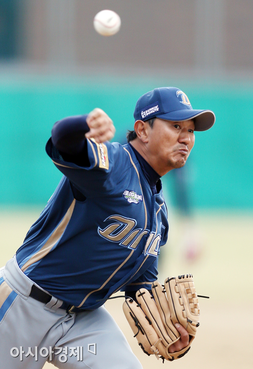[고양=아시아경제 정재훈 기자] 26일 오후 경기 고양시 경찰청야구장에서 열린 '2013 퓨쳐스리그' 경찰청야구단과 NC다이노스의 경기. NC 선발투수로 나선 손민한이 역투하고 있다.