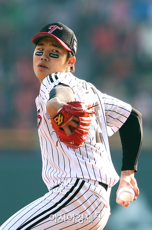 [아시아경제 정재훈 기자] 27일 오후 서울 잠실야구장에서 열린 '2013 한국야쿠르트 세븐프로야구' LG 트윈스와 롯데 자이언츠의 경기. LG 선발투수 임찬규가 역투하고 있다.