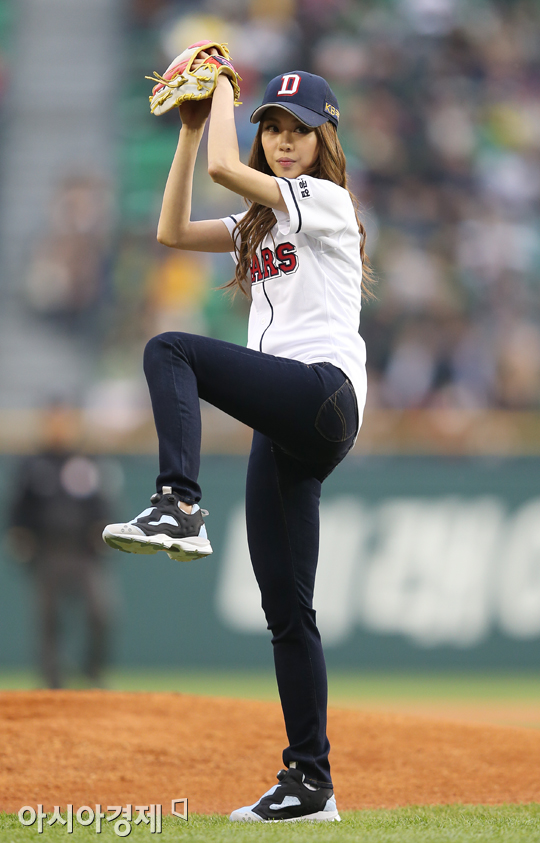 [아시아경제 정재훈 기자] 30일 오후 서울 잠실야구장에서 열린 '2013 한국야쿠르트 세븐프로야구' 두산 베어스와 KIA 타이거즈의 경기. 걸그룹 미쓰에이 페이가 시구자로 나섰다.