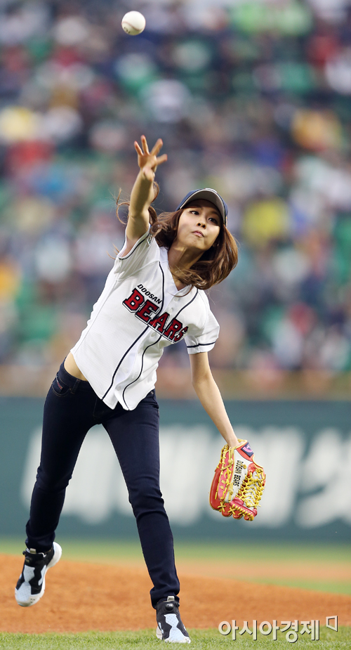 [아시아경제 정재훈 기자] 30일 오후 서울 잠실야구장에서 열린 '2013 한국야쿠르트 세븐프로야구' 두산 베어스와 KIA 타이거즈의 경기. 걸그룹 미쓰에이 페이가 시구자로 나섰다.