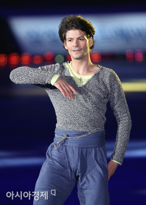 [아시아경제 정재훈 기자] 22일 오후 서울 방이동 올림픽공원 체조경기장 특설무대에서 열린 김연아 아이스쇼 '삼성 갤럭시★스마트에어컨 올댓스케이트 2013'에서 스테판 랑비엘이 연기를 펼치고 있다.