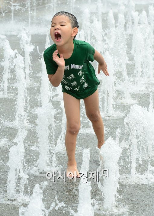 [아시아경제 백소아 기자] 서울 낮 기온이 31도를 웃돌며 무더위가 돌아온 27일 서울 세종로 광화문광장 분수에서 아이들이 옷이 젖는 것도 잊은 채 물놀이를 즐기고 있다. 기상청은 주말까지 서울의 낮 기온이 32도까지 크게 오르겠고 다음 주 초에 전국에 걸쳐 장맛비가 내리면서 더위가 한풀 꺾일 것으로 예보했다.