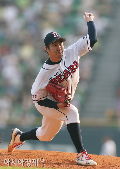 [아시아경제 정재훈 기자] 6일 오후 서울 잠실야구장에서 열린 '2013 한국야쿠르트 세븐프로야구' 두산 베어스와 삼성 라이온즈의 경기. 두산 선발투수 유희관이 역투하고 있다.