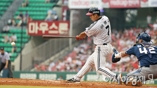 [아시아경제 정재훈 기자] 10일 오후 서울 잠실야구장에서 열린 '2013 한국야쿠르트 세븐 프로야구' LG 트윈스와 NC 다이노스의 경기. 3회말 무사 1, 3루 상황 이병규가 1타점 적시타를 치고 있다.