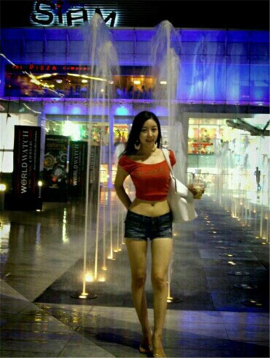 사진 속 원자현은 붉은 색 탱크톱 블라우스에 짧은 반바지를 입고 날씬한 몸매를 자랑했다.