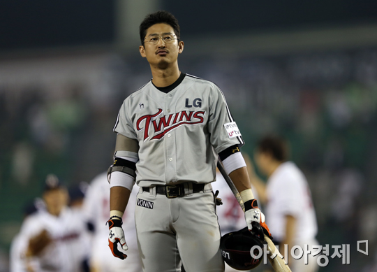 [아시아경제 정재훈 기자] 26일 오후 서울 잠실야구장에서 열린 '2013 한국야쿠르트 세븐 프로야구' LG 트윈스와 두산 베어스의 경기. 두 개의 홈런을 쳐냈음에도 팀이 패배하자 한숨을 쉬는 박용택.