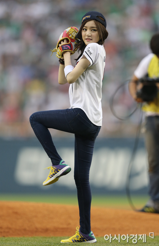 [아시아경제 정재훈 기자] 27일 오후 서울 잠실야구장에서 열린 '2013 한국야쿠르트 세븐 프로야구' 두산 베어스와 LG 트윈스의 경기. 배우 이유비가 시구자로 나섰다.