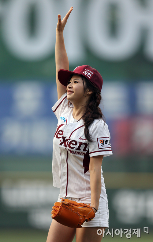 [아시아경제 정재훈 기자] 1일 오후 서울 목동야구장에서 열린 '2013 한국야쿠르트 세븐 프로야구' 넥센 히어로즈와 한화 이글스의 경기. 스페이스A 도하린이 시구자로 나섰다.