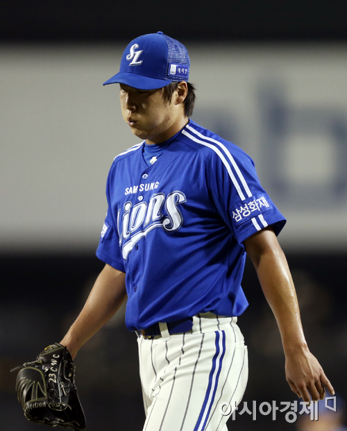 [아시아경제 정재훈 기자] 2일 오후 서울 잠실야구장에서 열린 '2013 한국야쿠르트 세븐 프로야구' LG 트윈스와 삼성 라이온즈의 경기. 6회말 3실점하며 패전의 위기에 놓인 차우찬이 한숨을 쉬며 퇴장하고 있다.