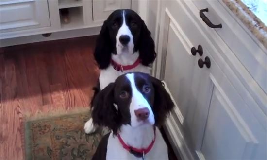 3일(현지시간) 영국 데일리메일은 호프와 로지라 불리는 스패니얼 종 강아지 두 마리가 주인이 밥을 주기 위해 노래를 부를 때마다 큰 소리로 짖으며 회전하는 춤을 추는 영상이 온라인에서 인기를 끌고 있다고 보도했다.