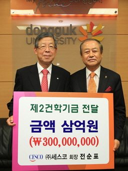 [아시아경제 이경호 기자]동국대는 세스코 전순표 회장이 16일 김희옥 총장을 방문해 3억원을 기부했다고 밝혔다.