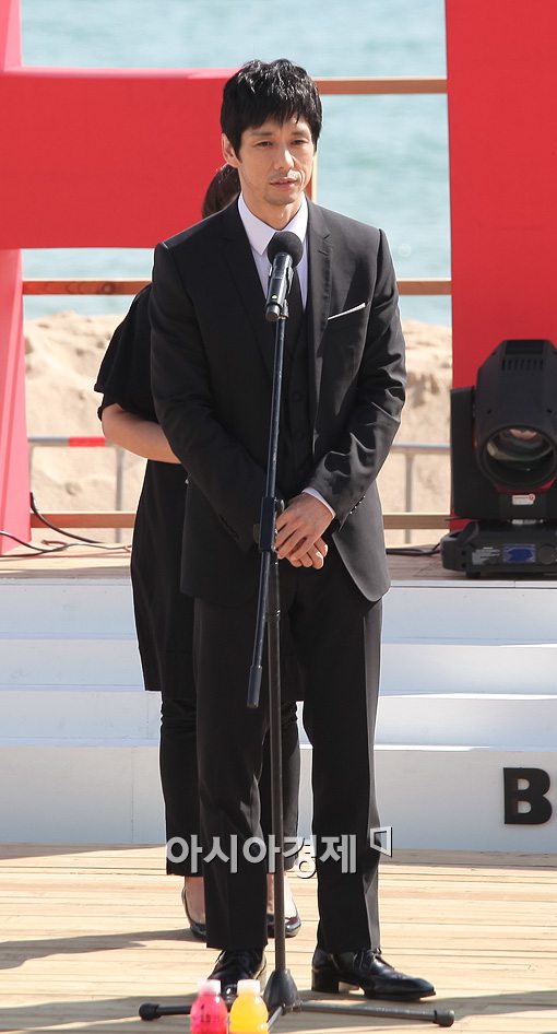 [부산=아시아경제 정준영 기자] 배우 니시지마 히데토시가 4일 오후 부산 해운대구 우동 해운대 비프빌리지 야외무대에서 열린 영화 '무명인(감독 김성수)' 무대인사에 참석해 질문에 답하고 있다.