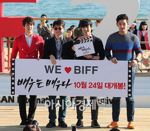 [부산=아시아경제 정준영 기자] 김형준, 신연식, 이준, 강신효가 4일 오후 부산 해운대구 우동 해운대 비프빌리지 야외무대에서 열린 영화 '배우는 배우다(감독 신연식)' 무대인사에 참석해 포즈를 취하고 있다.