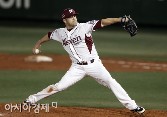[아시아경제 정재훈 기자] 8일 오후 서울 목동야구장에서 열린 '2013 한국야쿠르트 세븐 프로야구 준플레이오프 1차전' 넥센 히어로즈와 두산 베어스의 경기. 넥센 선발투수 나이트가 역투하고 있다.
