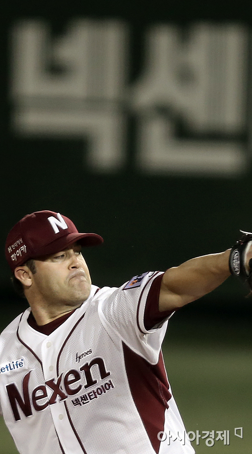 [아시아경제 정재훈 기자] 8일 오후 서울 목동야구장에서 열린 '2013 한국야쿠르트 세븐 프로야구 준플레이오프 1차전' 넥센 히어로즈와 두산 베어스의 경기. 넥센 선발투수 나이트가 역투하고 있다.