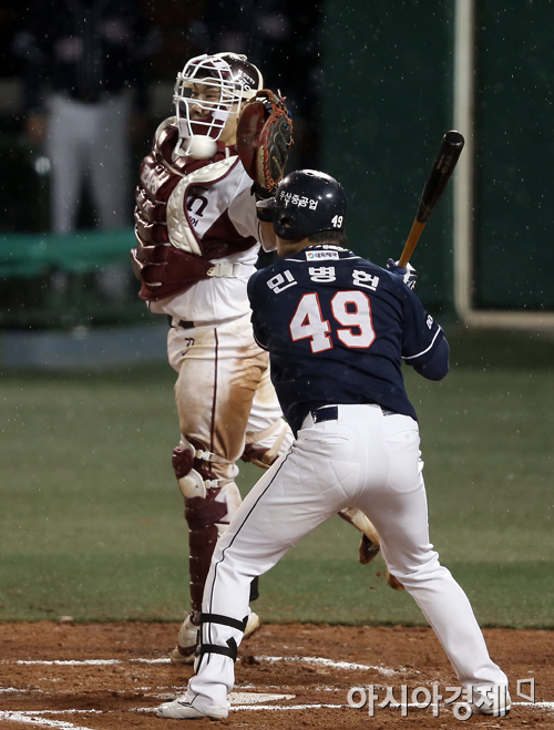 [아시아경제 정재훈 기자] 8일 오후 서울 목동야구장에서 열린 '2013 한국야쿠르트 세븐 프로야구 준플레이오프 1차전' 넥센 히어로즈와 두산 베어스의 경기. 6회초 무사 1루 상황 허도환이 몸을 날리며 포구하고 있다.