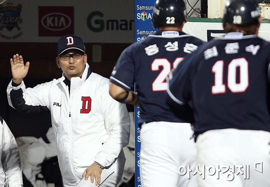 [대구=아시아경제 정재훈 기자] 24일 오후 대구시민야구장에서 열린 '2013 한국야쿠르트 세븐 프로야구' 삼성 라이온즈와 두산 베어스의 한국 시리즈 1차전. 5회초 1사 2, 3루 상황 이원석의 적시타에 2, 3루 주자 홍성흔, 최준석이 홈인하고 있다.