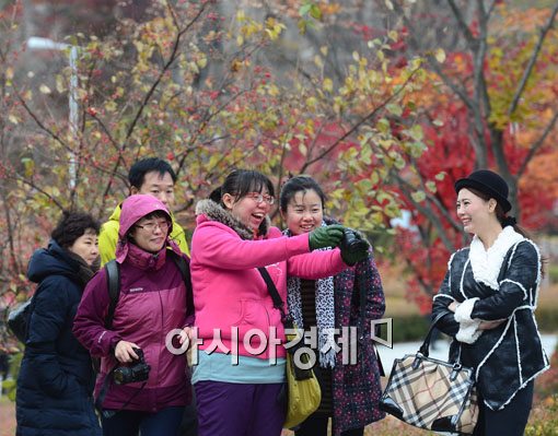 [아시아경제 백소아 기자] 밤사이 매서운 가을비가 지나간 17일 서울 서대문구 이화여자대학교에서 외국인 관광객들이 추운날씨에도 아름다운 단풍을 보며 즐거워 하고 있다. 기상청은 내일 서울 아침 최저기온이 서울 영하 2도로 오늘보다 9~11도가량이나 낮을 것이라고 예보했다.